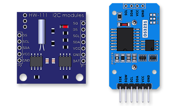 RTC ada banyak produsen, tapi yang umum di Indonesia biasanya berbasis DS1307 atau DS32311. Keduanya adalah modul jam real-time yang populer untuk proyek Arduino2 / ESP3 / Raspberry Pi4. Modul ini menyimpan waktu (jam, menit, detik, hari, tanggal, bulan, tahun). Dua RTC ini banyak digemari karena harganya murah. Berikut ini perbandingan keduanya: